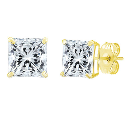 These 4mm princess-cut cubic zirconia basket earrings are set in rhodium-plated 925 sterling silver ...See More