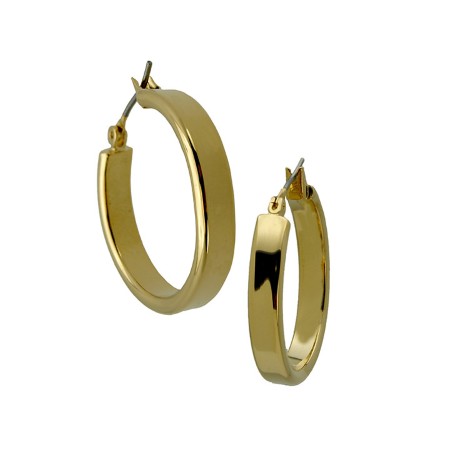 Upgrade your jewelry collection with these stunning 1” hoop earrings. Made of a gold-tone metal that gives them a sleek and modern look. The secure snap-bar closure ensures a comfortable and secure fit, making them perfect for all-day wear.