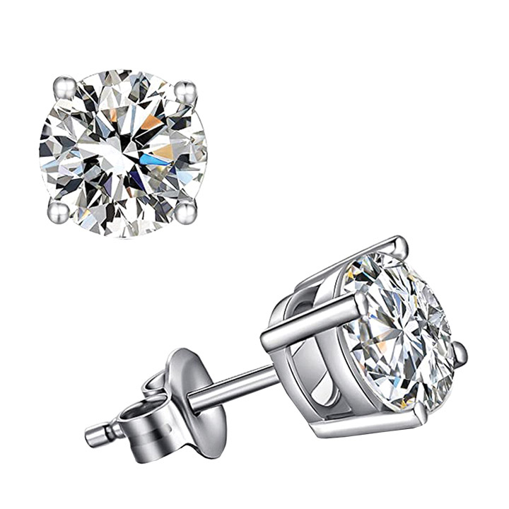 These 4mm round cubic zirconia basket earrings are set in rhodium-plated 925 sterling silver for lasting shine and durability. Their classic design and brilliant sparkle make them an elegant choice for everyday sophistication or special occasions.