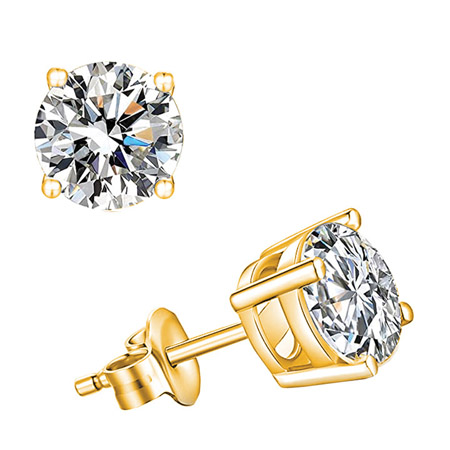 These 4mm round cubic zirconia basket earrings feature a warm yellow plating over 925 sterling silver for a rich, golden glow. They have a timeless sparkle and classic setting for any occasion.